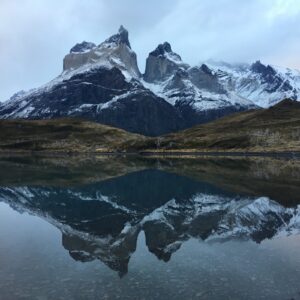 La naturaleza de Patagonia es entre la más espectacular del mundo. En un momento increíble, vi las montañas impresionantes de las Torres del Paine reflejadas en dos lagos grandes de Patagonia. Los lagos estaban tan claros como un espejo. Aquí se ve en una foto que saqué.