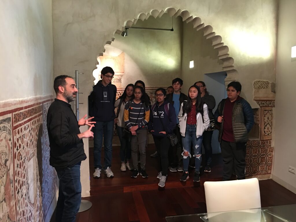 Esta mañana, nos despertamos a las seis y desayunamos a las siete; el hotel nos ofreció un bufé con comidas españolas. Había un quiche de patatas, huevos revueltos, salchichas y mucho queso y fruta. Después de comer, caminamos con el equipaje a la estación del tren, Atocha, dónde nosotros nos subimos al tren para Córdoba. En el tren, algunas personas durmieron mientras otros escucharon música. Tan pronto como llegamos a Córdoba, fuimos al hotel y dejamos nuestras maletas. Entonces, fuimos al mercado Victoria, dónde almorzamos. Las chicas compraron tapas de mariscos y se las compartieron. Próximo, caminamos por los callejones estrechos y empedrados para visitar La Casa Árabe. El director nos explicó sobre la convivencia de las culturas cristianas, judías y musulmanas entre 700 hasta 1492, cuando los Reyes Católicos vencieron al último rey moro. La casa ahora es un centro cultural para promover la cultura árabe. Fue construida en el siglo XV. La casa es muy hermosa. Después, teníamos tiempo libre para ir de compras. Entonces, fuimos al hotel por una hora antes de ir a Los Baños Del Alcázar Califal por una hora. Construidos en el siglo X, eran un sistema elaborado de diferentes salons de baño debajo de la tierra para el Califato y miembros de la comunidad. ¡Fue fascinante! Caminamos por Córdoba para cenar en un café del aire libre en el medio de la enorme Plaza de la Corredera. Comimos un montón de comida, y después fuimos a una heladería. Finalmente, volvimos al hotel y nos acostamos, muy cansados de tanto viajar.