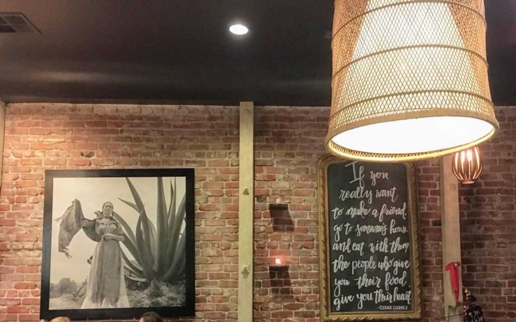 En general, Zona Rosa tiene buena comida, pero es demasiado caro y americanizado. Aunque las carnitas eran auténticas en sus ingredientes, el guacamole no era al puro estilo mexicano. El restaurante es muy pequeño y ruidoso, pero lindo. El diseño interior claramente no es mexicano auténtico y es alguien americano tratando de que parezca mexicano. El cartel en la entrada, “Mi casa es su casa” y la cita de César Chávez en la pared (“If you really want to make a friend, go to someone’s house and eat with them… The people who give you their food give you their heart”) son ejemplos de esto.