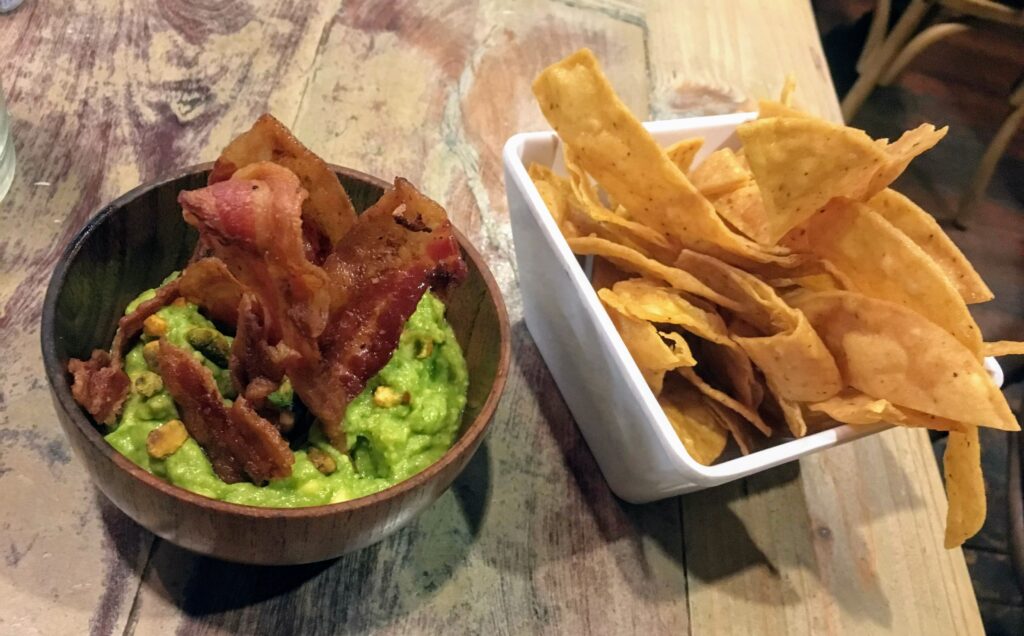 Para el primer plato, tuve que probar el guacamole especial del que tanto había oído hablar. Con tocino y pistachos, un aliño poco común al guacamole tradicional, a muchos clientes les encanta esta versión de un plato clásico. Cuando miré el menú y vi que eran once dólares, me sorprendió y esperaba que nos darían un montón de guacamole. Me decepcionó cuando el guacamole llegó a la mesa, ya que era tan pequeño. Esperaba que el sabor hiciera que el precio valiera la pena. El guacamole en sí era bueno: era ligeramente picante y la cantidad justa de lima. Desafortunadamente, el tocino y los pistachos no sabían a nada. Probé la combinación muchas veces con la esperanza de que el sabor del tocino y los pistachos se hiciera más fuerte, pero nunca sucedió. Me encanta el guacamole y he probado muchos tipos diferentes, pero esta fue en general una experiencia decepcionante.