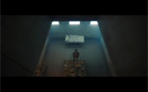 El Hoyo es una película de miedo sobre una distopía futurista en España. El argumento de la película sigue a un hombre, Goreng (Iván Massagué), que decide dedicar seis meses de su vida en “el hoyo” para obtener un título universitario. “El hoyo” es una cárcel vertical con trescientos pisos. Cada piso tiene dos prisioneros, y en el medio del suelo, hay un hoyo. Encima de la cárcel, hay una cocina masiva. Cada día, los cocineros preparan comida rica para los prisioneros y la ponen en un ascensor. Después, el ascensor baja a través de los pisos, y para por dos minutos en cada piso para que los prisioneros puedan comer.