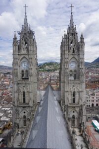El próximo día fuimos a un recorrido urbano por la ciudad. Nosotros caminamos por el centro, viendo sitios históricos y antiguos. Primero escalamos la Basílica del Voto Nacional, que es una iglesia de estilo gótico. Esta iglesia es muy grande, con torres altas y un interior muy hermoso. Había muchas escaleras que subir y estábamos muy cansados, pero valió la pena cuando llegamos a la cima. Podíamos ver toda la ciudad, una vista maravillosa. Después visitamos la Plaza de la Independencia en el centro de la ciudad. Vimos la ceremonia del cambio de guardia y había muchísima gente allí para verla. Finalmente visitamos la Iglesia de la Compañía de Jesús. Esta es una iglesia magnífica de estilo barroco que es altísima y tiene muchos detalles intrincados. El interior es de oro con cuadros y decoraciones hermosas.